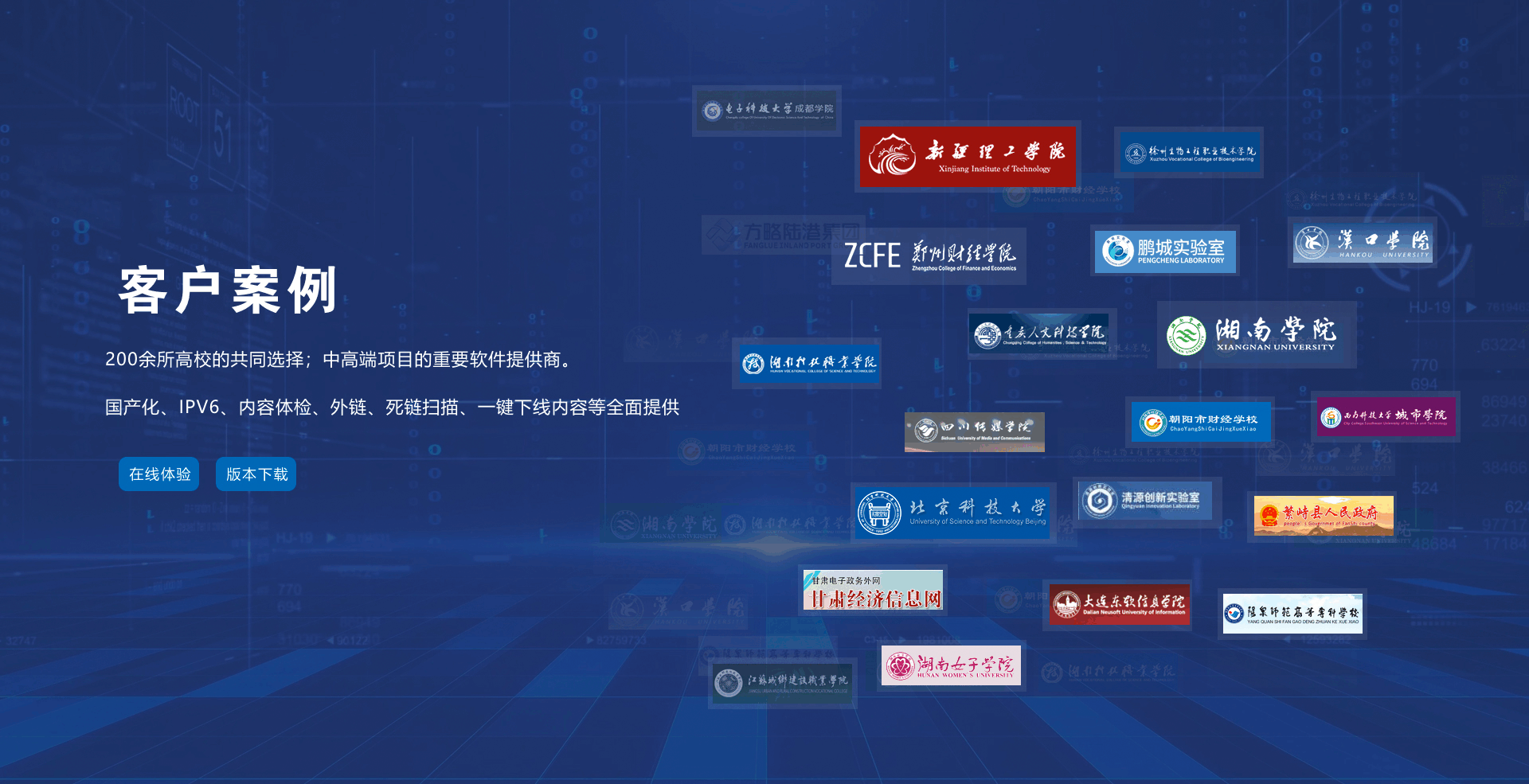| 國家安全等保認證 | 數(shù)百個大型客戶每個季度掃描 | 動靜態(tài)分離部署 |